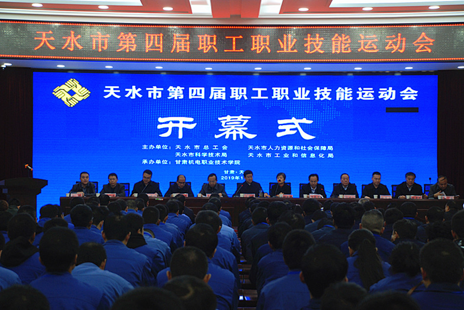 9點鐘,天水市第四屆職工職業技能運動會在甘肅機電職業技術學院開幕,甘肅省總工會副主席張愛華,天水市政協副主席王振宇,市長助理李敬峰,省總工會職工技協辦公室主任周建平,甘肅機電職業技術學院黨委書記、院長堅葆林,副院長張德龍,市總工會、市人社局、市科技局、市工信局等主辦單位領導出席。