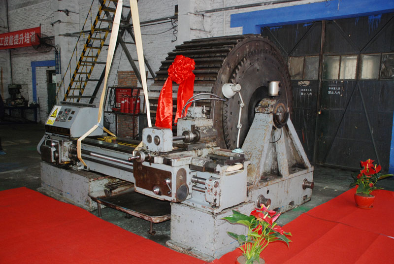 414日上午,星火機床機械制造公司精密大修車間氣氛隆重而熱烈,星火機床公司工業遺產老舊設備捐贈儀式在這里舉行。捐贈現場的大紅地毯上, 星火機床公司1973年生產的產品TX-1001牙條車床身披鮮艷的紅花,象一位待嫁的“新娘”,等待她的“婆家”天水市工業博物館 “迎娶”回家。