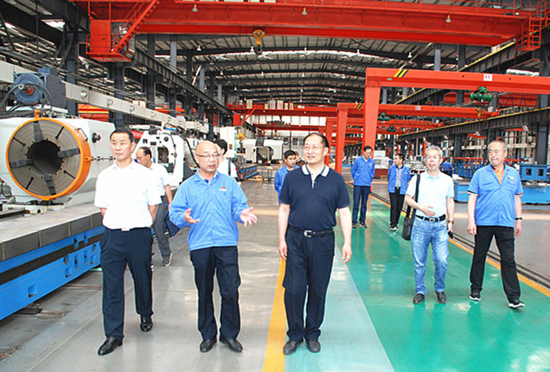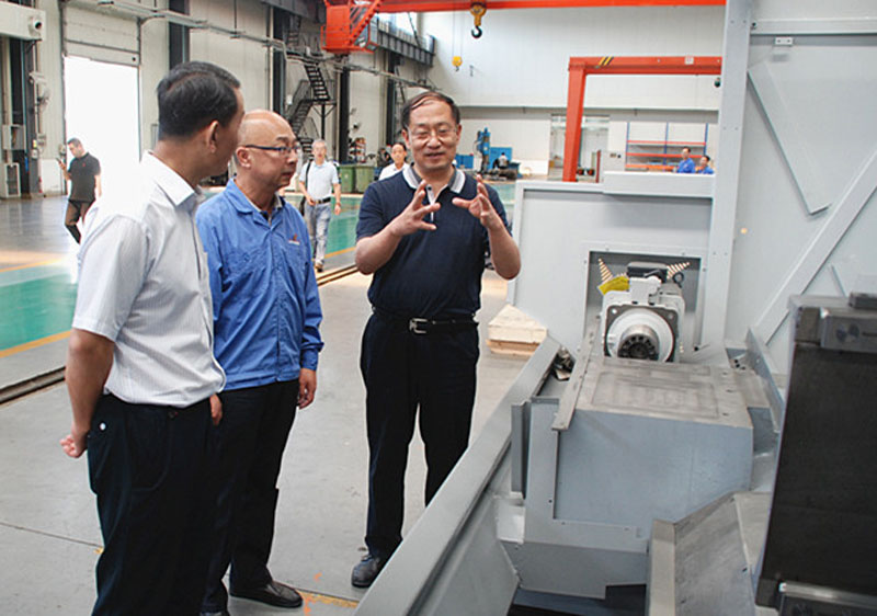 星火機床公司領導蔣俊、趙錦銘、鞠家兵、劉生玉陪同參觀生產現場。