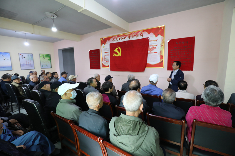 9點(diǎn)多鐘,離退休支部的黨員冒雨陸續(xù)來到活動(dòng)中心,他們中有退休數(shù)十年的老同志,也有剛加入退休職工隊(duì)伍行列的“新人”。參加活動(dòng)的黨員中有拄著拐杖的,有被人攙扶的,還有坐著輪椅的。他們不論年齡大小,身體狀況如何,都有較強(qiáng)的組織觀念和履行黨員義務(wù)的責(zé)任心。