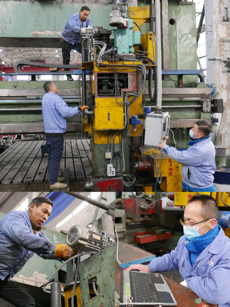 進入機床裝備公司,到處可見三三兩兩的職工們相互配合、組裝零部件的景象。他們有刮研的,有鉆眼的……零件在他們手里起起落落,動作是那樣嫻熟。相信此刻的他們早都把過年這回事拋之腦后了。