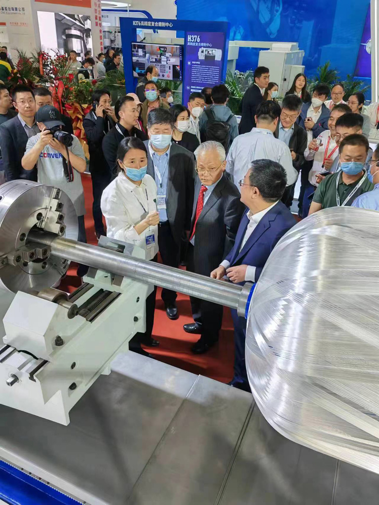 邱鋼、王黎明一行認(rèn)真細(xì)致的參觀了星火機床集團(tuán)公司展出的多軸聯(lián)動復(fù)合材料纏繞機床,詳細(xì)了解了該機床的性能參數(shù)、技術(shù)優(yōu)勢以及應(yīng)用領(lǐng)域,并對星火機床技術(shù)創(chuàng)新工作給予充分肯定。