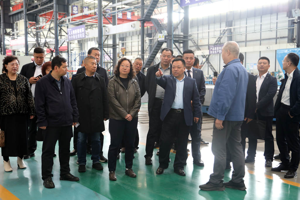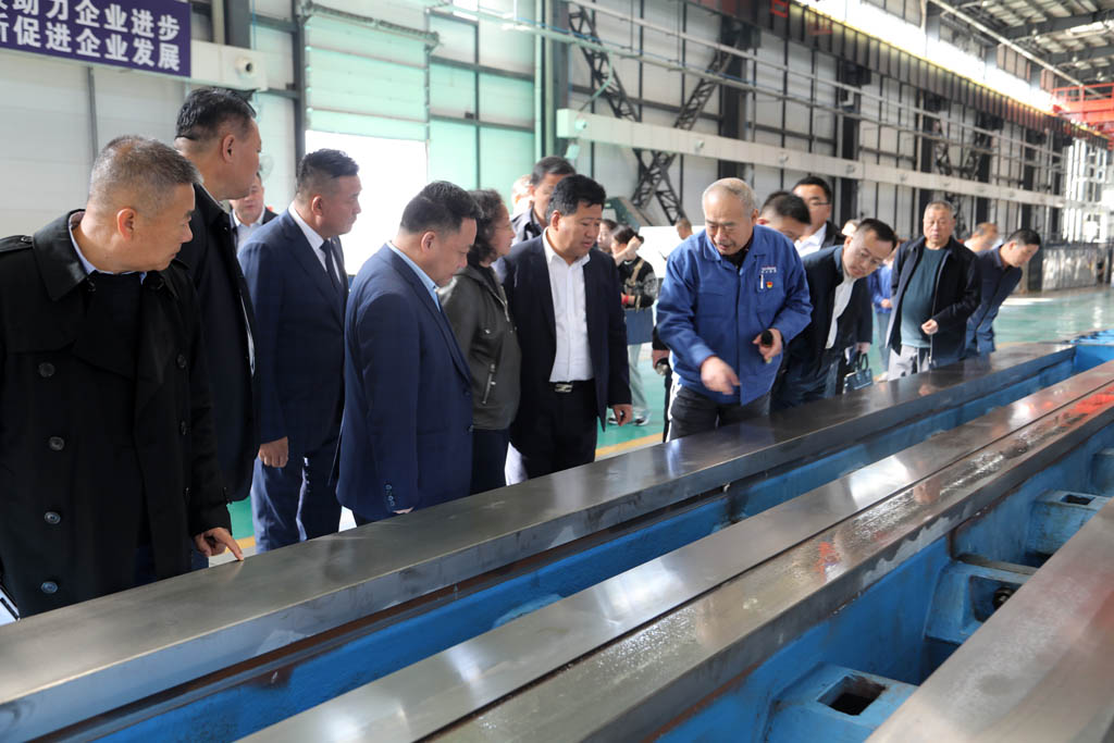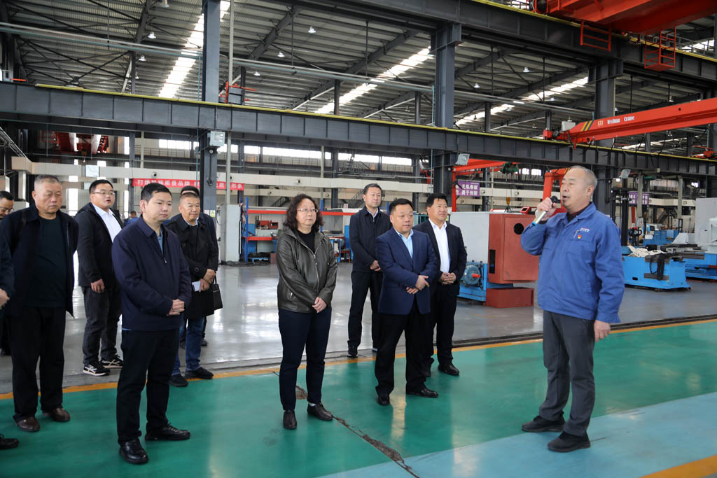 郝效冬一行深入公司裝配生產現場,詳細了解了公司歷史沿革、基本情況、產品研發、項目建設等情況,并參觀了公司自主研發生產的萬能軋輥磨床、五軸聯動機床、復合材料纏繞機床、重型臥式車床等產品。